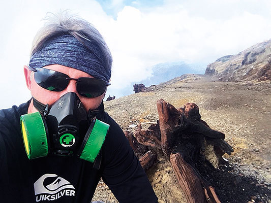 After breakfast one morning I rode to the Pos Paltuding ranger station. By 8:30 AM I had rented a gas mask and started up the steep path to Gunung Ijen. The trail is surprisingly wide and smooth, as it was built to accommodate the carts used to haul sulphur down from the mountain. That morning I didn’t see much sulphur being hauled, but I did see carts full of worn out tourists. You see, most people climb Gunung Ijen at 3:00 AM with hopes of seeing the famous “blue flame”. Instead, I woke up as usual, had a leisurely breakfast and avoided the crowds. That worked out very well because a couple hours later when I reached the top, I was the only tourist in sight.