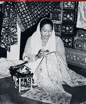 Ibu Asmah binti M. Aziz was the oldest in this group, and she alone continued to make batik in the years that followed. In 1975, she opened a batik workshop, which she turned over to her daughter, Ibu Azmiah bint Jancik, in 1985. Ibu Azmiah went on to win multiple awards for her batiks, and several of her collections were purchased by the Horniman Museum in Great Britain.