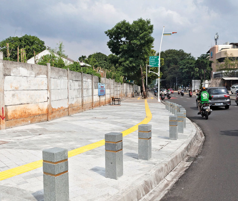 One of the results of the sidewalks revitalisation used as a pilot is the sidewalk on Jalan Sudirman-MH Thamrin that was revitalised in 2017 to 2018. The pedestrian pathway has been designed to be friendly for people with disabilities, including the pelican crossing between the sidewalks on the west and east sides.