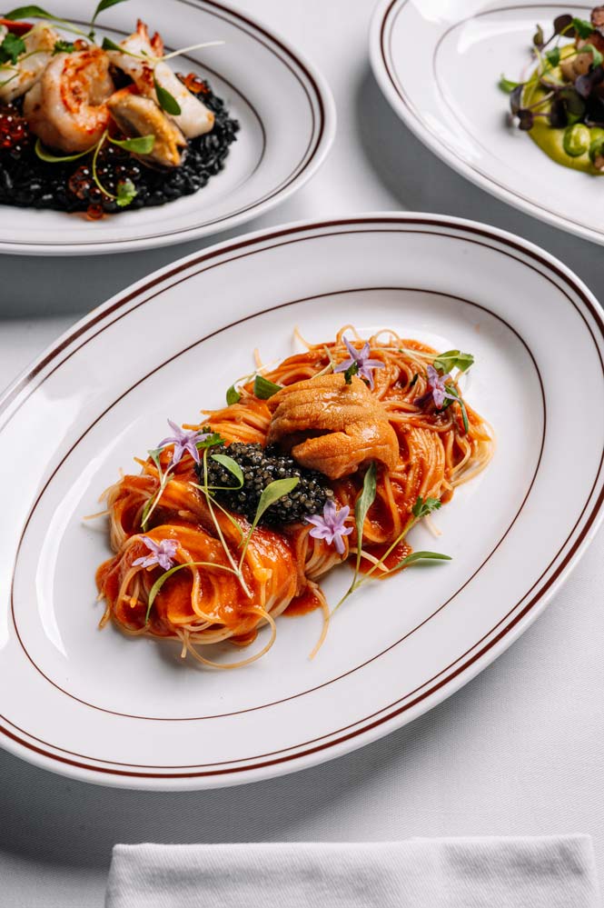 This all comes together in the traditionally-prepared Spaghetti Carbonara, a divine combination of Jon’s Smokery Guanciale and an ‘unholy amount of Pecorino Romano’. The result is a plate of creamy, salty heaven. Other pasta highlights include the Spaghetti ai Ricci di Mare, cooked in seafood broth, chilled and topped with fresh uni and crudo scallops from Japan. For something different, try the Linguine Pescatore alla Jokowi, a spicy ‘sambal’ pasta served ‘by accident’ to the President himself!