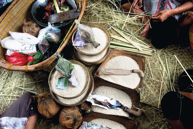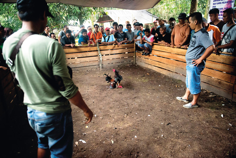 On the second day cockfights and gambling begin and are performed in the morning and afternoon. The losing (dead) cock from each fight is then hung up on a post, as an offering for the spirits and later made into soup. I was asked to share a bowl with the village cultural leader (kapala adat) and I can vouch for its tasty flavour!
