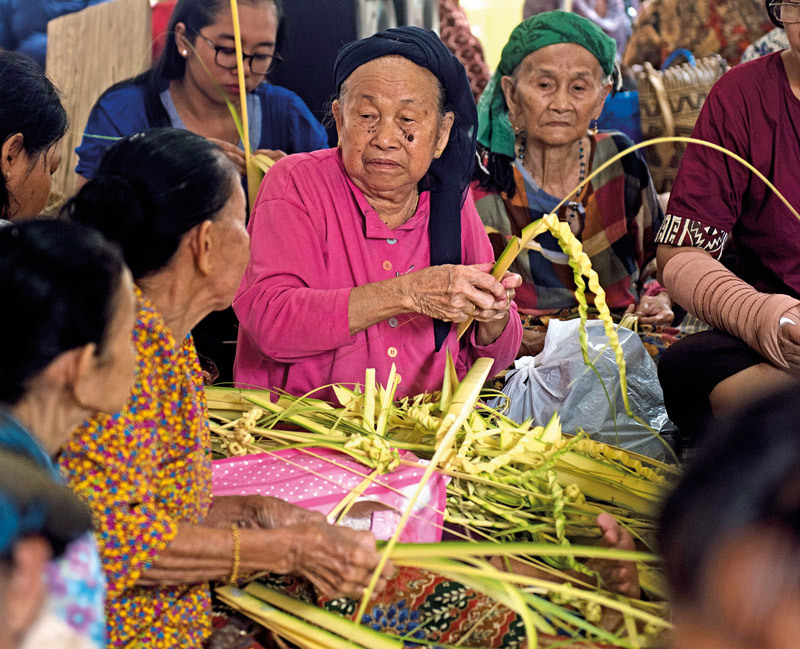 During the following days, the men focus on constructing the papuian, while in the assembly hall the women prepare baskets, rice and other items considered of use in the spirit world. Day eight attracts officials and others from neighbouring villages to join in the feast. This is the day of slaughter when pigs and buffalo are sacrificed, speeches are delivered and a festive mood takes over.