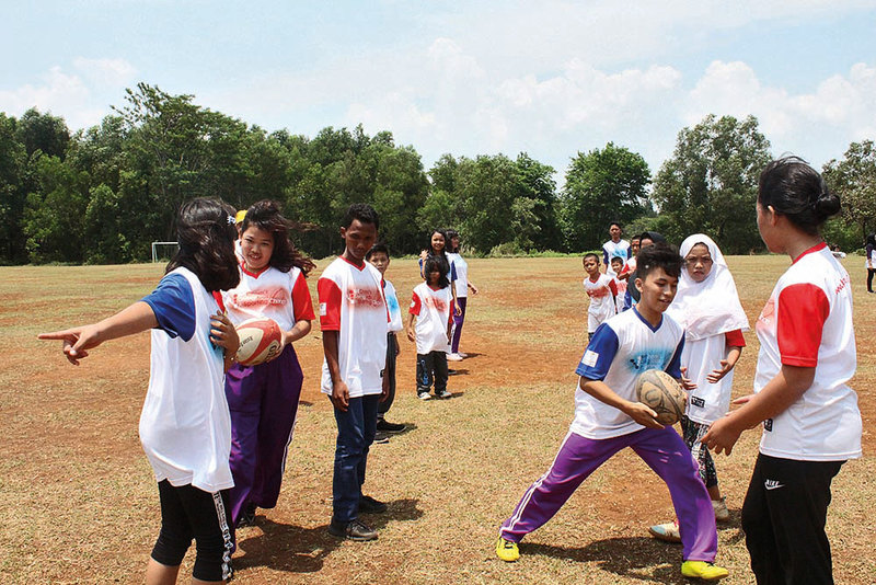BritCham Indonesia remains the only foreign business group to have established a children’s community portfolio. Now in its 11th year, BritCham’s Giving Kids A Sporting Chance gave another 60 children the opportunity to have their first go at rugby, all under the watchful eyes of Byron Kelleher, the recently retired charismatic New Zealand All Black with 58 caps, with helpful team from Jakarta Komodos Rugby Club.