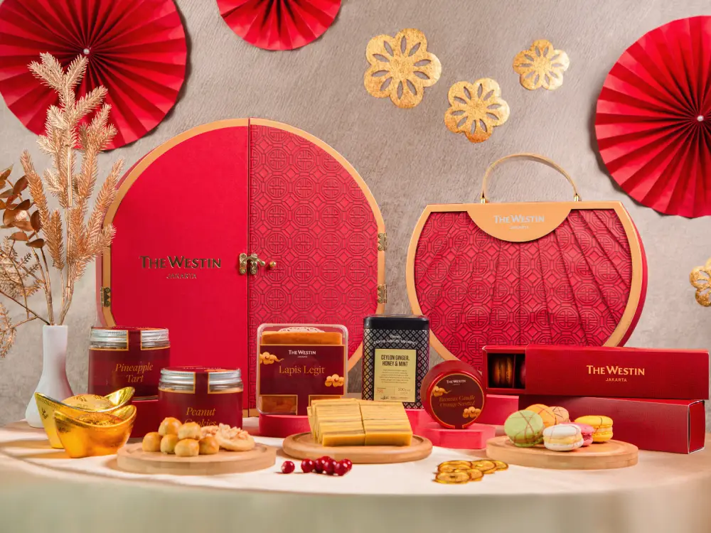 To spread the blessings of the Lunar New Year through heartfelt gestures with loved ones and respected partners, the Westin Jakarta unveils The Lunar Opulence Collection, comprising a duo of timeless hampers. The Prosperity Signature Set presents a distinguished Lunar New Year gift, inclusive of Pineapple Tart, Peanut Cookies, The Westin Macaroons, a Honey Beeswax Candle, Dilmah Silver Jubilee Gourmet Tea, and the classic Lapis Legit, priced at IDR 1,988,000++. For a smaller yet thoughtful option, the Lunar Delight Set is available at IDR 988,000++, offering Pineapple Tart, Peanut Cookies, and Lapis Legit. Each hamper arrives in striking red and gold boxes, beautifully adorned with oriental motifs that embody the spirit of the season.
