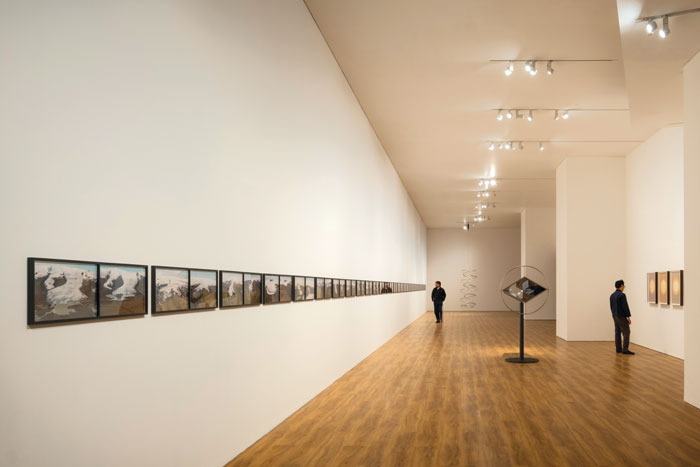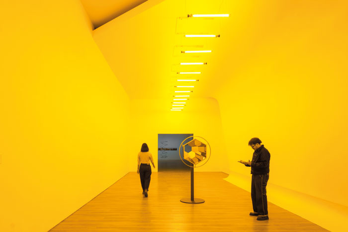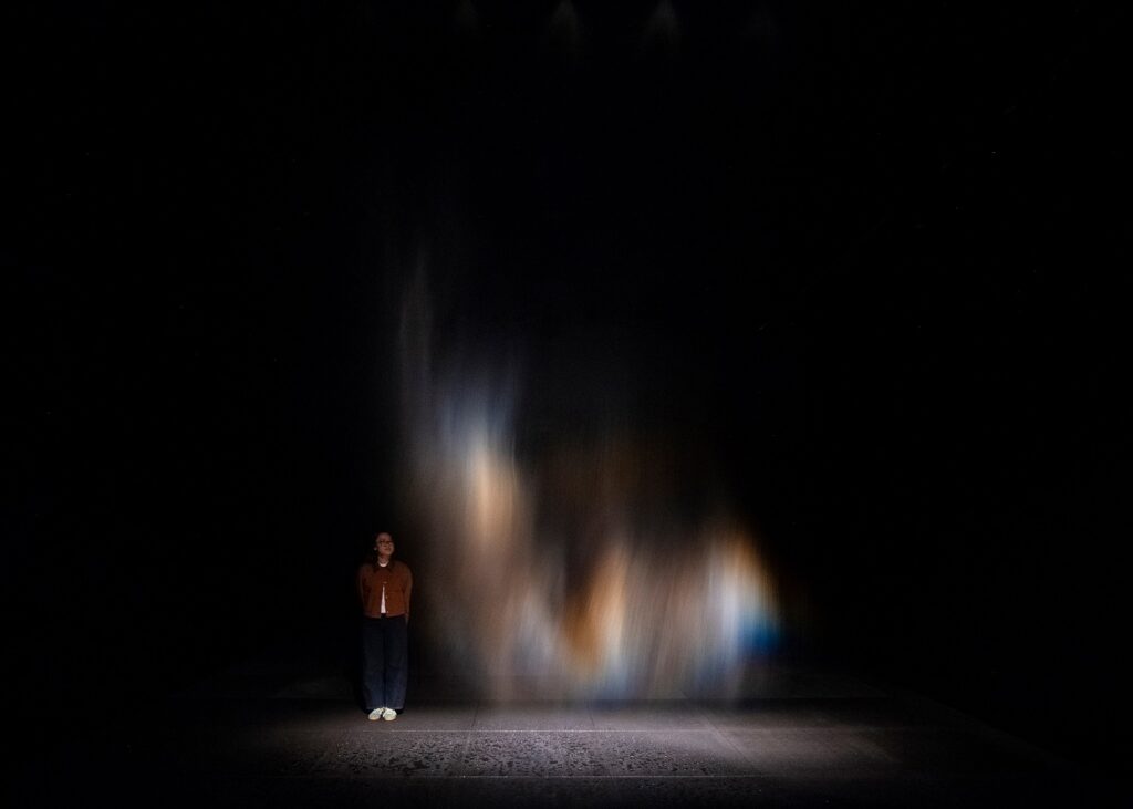 There are rooms shaped by mist, reflections, shadows, and slow-moving time. Rainbows that appear only at certain angles, multiplied silhouettes that refuse to stay aligned. Then visitors are led into a corridor saturated in yellow that compresses perception before opening to a space with glacial images stretching across decades. Drawn from more than thirty years of practice, the exhibition unfolds as a sequence of environments to be entered, where looking gives way to sensing and our own movements become part of the art itself.