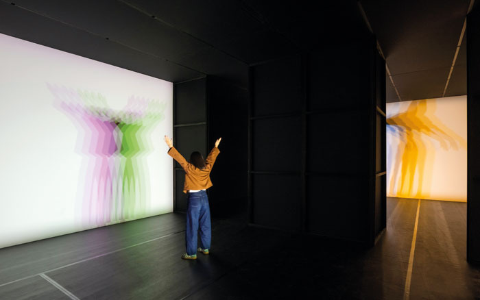 Elsewhere, Multiple shadow house (2010) fractures visitors into overlapping silhouettes of colour. Green, magenta, cyan shadows detach from the body, lag behind it, refuse alignment. Children test the edges of their multiplied selves; adults do the same, more cautiously. Identity here is provisional, spatial, contingent on light sources you cannot see but feel.