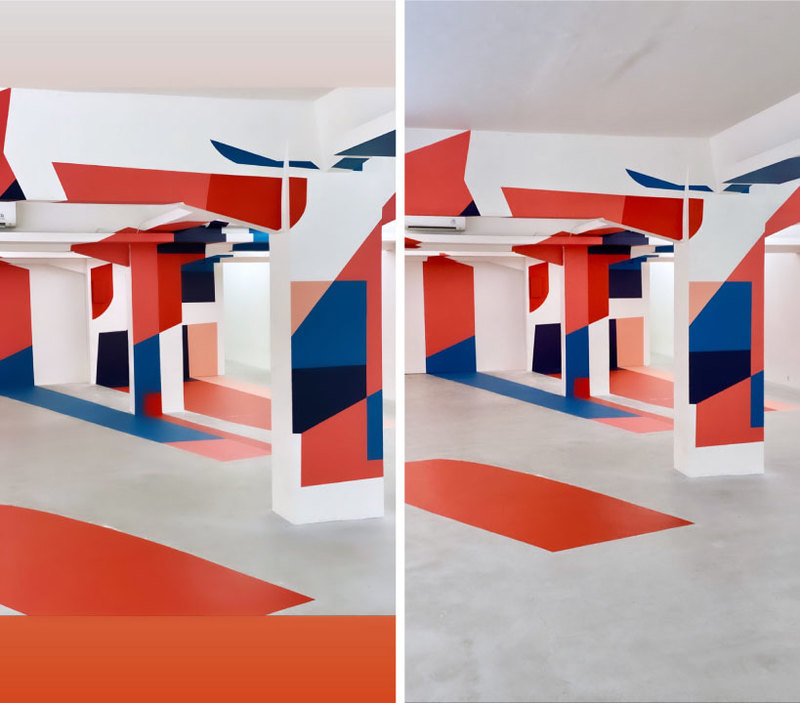 Bunga seems not yet as sophisticated conceptually, but she is young and her experiences as well as her willingness to explore and experiment should make her grow and develop her artistic concepts soon too. Besides a small number of paintings in her solo exhibition, she also prepared an anamorphic installation titled “Brainville, let’s get in.” In this experiment Bunga projected her painting into a three-dimensional ‘plane’, which collides with pillars, walls, ceilings, and also the floor of the space. At a glance it looks like fragments of colour fields chopped and separated from each other. Viewed from a certain vantage point, the separation is then ‘reunited’, forming a typical flat formal configuration commonly found in her paintings. By presenting this rather unusual perceptual experience, Bunga indirectly reminds us that reality depends on perspective. This metaphor would be relevant to the construction of inner values in our culture today: truth is relative and not always certain. Perception alone is no longer able to be a single instrument to ‘see’ reality. It is necessary to adjust one’s perspective in building the meaning of the truth around reality.