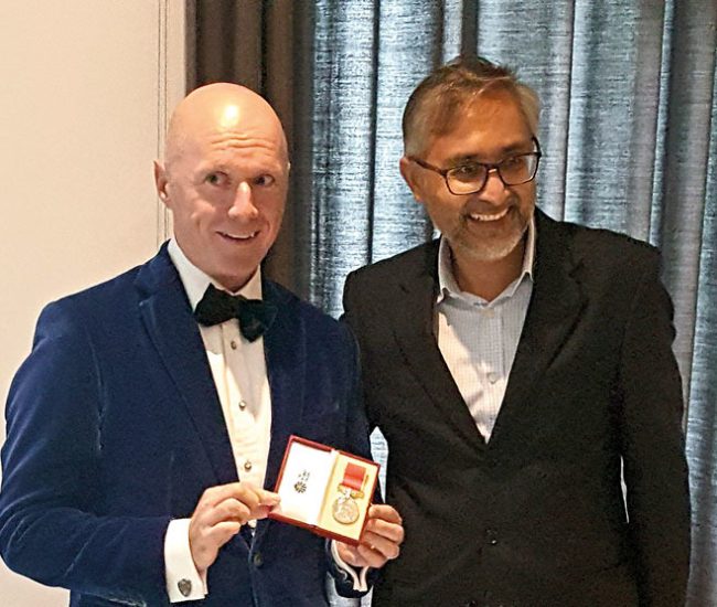 The British Ambassador’s elegant residence was filled with an enthusiastic and grateful crowd in late May when he organized a reception to present The British Empire Medal to not one but two British citizens in a heartwarming ceremony . The fact the recipients were husband and wife was an absolutely brilliant bonus. The British Empire