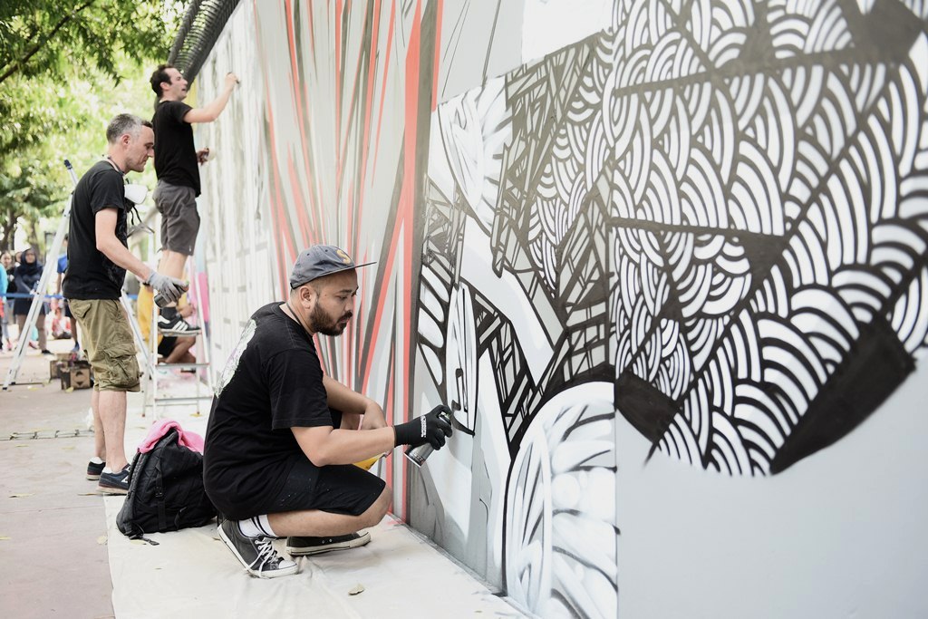 Off the Wall Jakarta is a collaboration between French and Indonesian urban street artists. Combining their signature designs, the artists showcase their work thanks to a collaboration between the French Institute of Indonesia (IFI) the Yello Harmoni Hotel. French artist Jules Dedet Granel and Katre joined forces with veteran Indonesian urban artists Darbotz and Stereoflow to create a combination of work that showcases street artists’ contribution