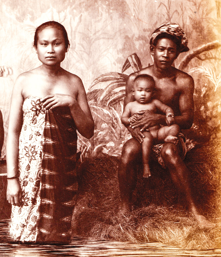 This photograph, taken around the year 1900, shows a young family bathing in a river, likely in Batavia, nowadays Jakarta. This scene was staged in a photo studio, capturing the photographer’s deliberate effort to document a cherished everyday habit. (Sake Santema Collection)