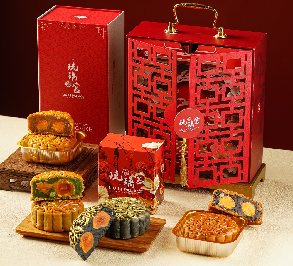 Housed in an elegant, custom-designed box featuring bold red tones and gold latticework, the Liu Li Palace mooncakes are as visually impressive as they are delicious — making them the ideal choice for corporate gifting, family celebrations, or personal indulgence.