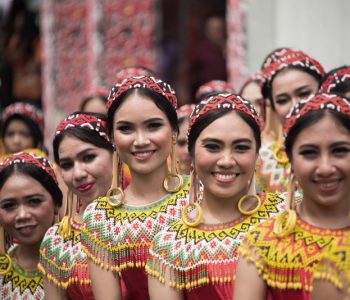 The crocodile appeared on the stage in the form of a human. The dancer writhed and slithered, accompanied by the deep tones of the didgeridoo. This opening dance at the 2018 Gawai Festival was received with loud cheers from the crowd. Dayak women dance at Gawai Festival. Photo by David Metcalf/NOW!JAKARTA The Gawai festival committee