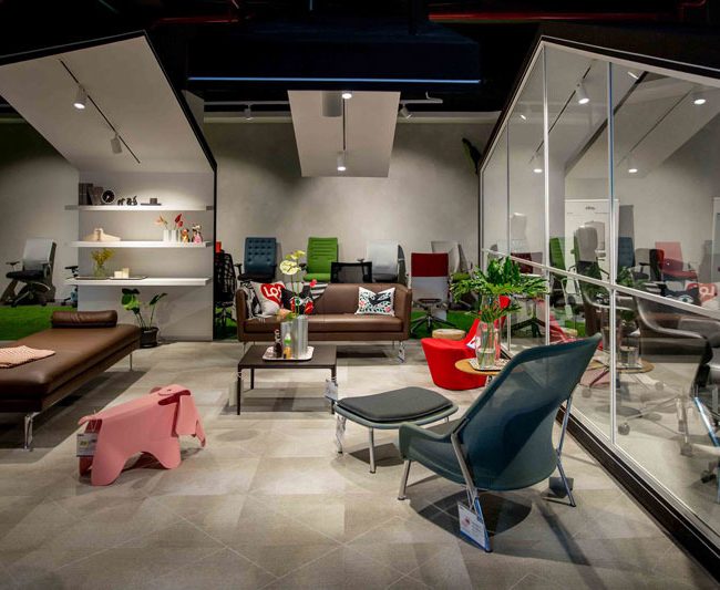 Vivere Group recently opened its new showroom named Working by Vivere at the Jakarta Design Center. The fresh-looking showroom with a brand new logo occupies nearly 500 square meters on the 6th floor, allowing a closer look at premium collections and brands such as Vitra, Steelcase, Milliken, Lightspace, Jeb, Grado, Benithem and many more. A prominent