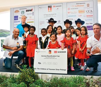 The ‘German Reunification Cup’ (GRC) is an annual charity golf tournament, which dates back to 2002. Organized by PT Schenker Petrolog Utama in collaboration with PRIME Consultancy and under the patronage of the German Embassy, the 16th tournament was held on Friday, 6 October at Rancamaya Golf and Country Club in Bogor. A total of