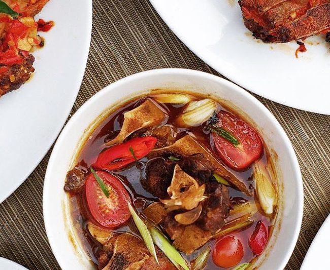 Grand Whiz Poins Square has launched its Oxtail Soup in three variants— Sop Buntut Bakar Kecap, Sop Buntut Rica-Rica, and Sop Buntut Garang Asem, all prepared by recently appointed Chef Doly. Sop Buntut garang Asem created by Chef Doly. Photo courtesy of Whiz Poins/NOW!JAKARTA Here it is served as an appetiser. The oxtail rica soup