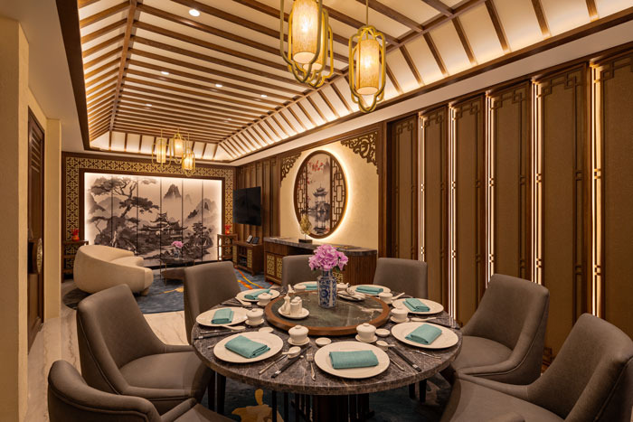 The restaurant presents a tempting list of seasonal dishes, including: Salmon and Jellyfish Yusheng, Truffle Shrimp Siu Mai, Pan-Seared Chicken Gyoza, Stir-Fried Lobster, Grouper Fillet, Suckling Pig, and the hotel’s Signature Peking Duck. Guests are welcomed with Pearls of Wisdom, a refreshing tea blend, and themed cocktails.