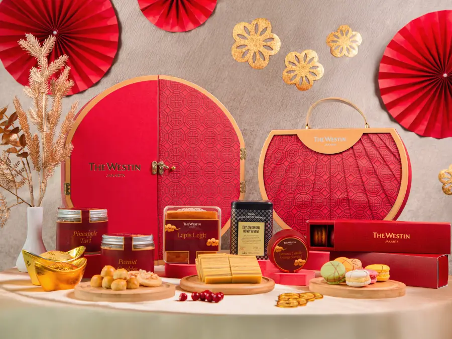 To share the joy, The Westin Jakarta launches The Lunar Opulence Collection, two hampers wrapped in striking red and gold. The Prosperity Signature Set (IDR 1,988,000++) features Pineapple Tart, Peanut Cookies, The Westin Macaroons, Honey Beeswax Candle, Dilmah Silver Jubilee Gourmet Tea, and Lapis Legit. For a simpler gesture, Lunar Delight (IDR 988,000++) includes Pineapple Tart, Peanut Cookies, and Lapis Legit. Members of Marriott Bonvoy, Club Marriott, and Club Epicure, along with bank partners, enjoy 20% savings.