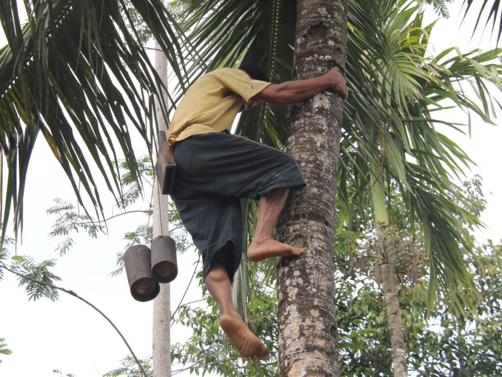 Even before the nectar flows, the trees require different forms of dialogue. Coconut blossoms yield through daily pruning and gentle massaging, while Arenga blossoms demand a more rigorous ritual; the flower must be swayed and the stem rhythmically pounded before the first drops appear. One cannot help but wonder how such intimate knowledge was first discovered.