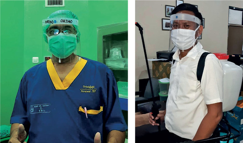 For the face shield itself, ADPII has produced up to tens of thousands of the total needs of around 300,000 pieces, which are distributed to various regions, such as on the islands of Java, Bali, Kalimantan, and Sulawesi. They still produce face shields to reach the required numbers. In addition, some of the face shields are designed to be easily duplicated so that people can directly make their own. In Bali, a well-known architect office then accommodates the designs of one of its Satgas members, Singgih S. Kartono to be made by the office staff and distributed in the Bali region.