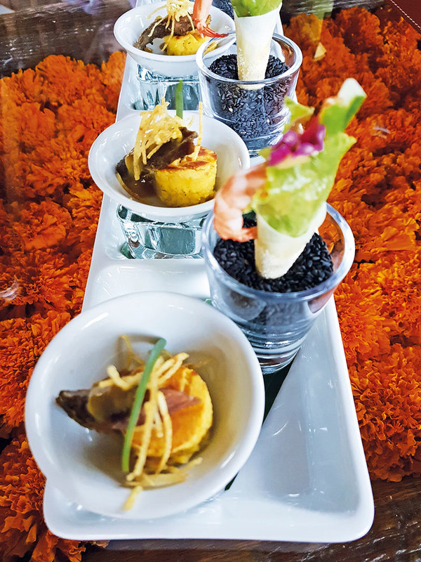 Food plays a very important role at this place that serves its clientele with products directly from its own garden. Indonesian rijsttafel dinner is recommended for guests to experience the many distinctive flavours of Indonesia – apparent through different flavours of sate, urap (Balinese mixed vegetables with spiced grated coconut), rendang (well-known Indonesian dried beef curry), bebek betutu (Bali-style roasted duck marinated in spices, herbs and cassava leaves, wrapped in banana bark and cooked underground), nasi kuning (yellow rice cooked with turmeric and infused with lemon grass, bay leaves and lime leaves in coconut cream) and many more.