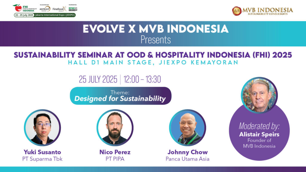 From 22–25 July 2025 at the Jakarta International Expo (JIExpo) Kemayoran, EVOLVE x MVB Indonesia will host two sessions at Food & Hospitality Indonesia (FHI) 2025 that explore the future of sustainable food and design in hospitality.