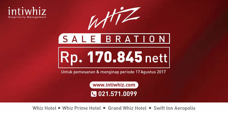To appreciate this joyous month, Intiwhiz Hospitality Management offers a promotion named “Sale Bration”, where guests can enjoy a special rate of only IDR 170.845,- (terms and condition apply) for booking and staying in all hotels under Intiwhiz Hospitality Management on 17 August, including Whiz, Whiz Prime, Grand Whiz and Swift Inn that spread all major cities in Indonesia such as Jakarta, Bogor, Tangerang, Balikpapan, Yogyakarta, Semarang, Surabaya, Mojokerto, Lampung, Makassar, Manado, Cilacap, Pekanbaru and Bali.