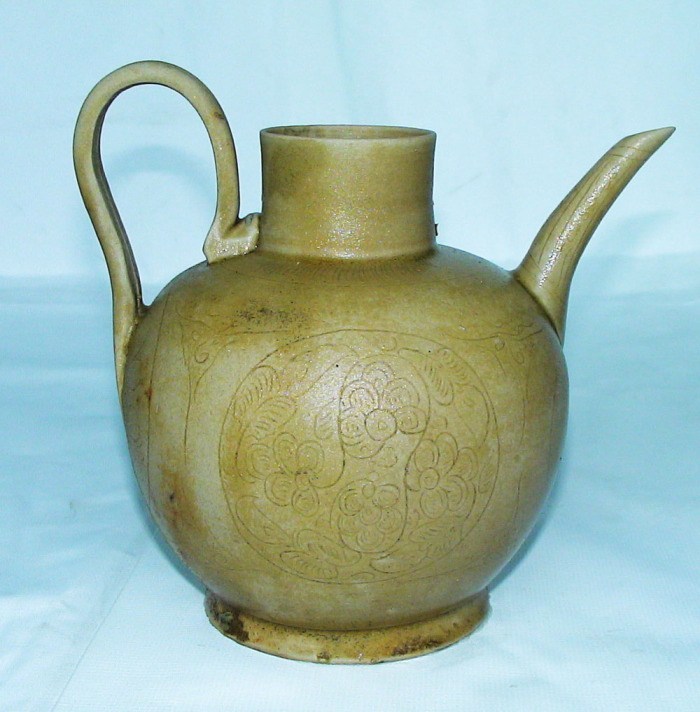 Some 250,000 artifacts were brought ashore, the majority ceramics, in addition to Near Eastern and Indian glassware, crystal, gemstones, jewelry, and various metal objects like ingots, bronze mirrors, and implements used for Buddhist ceremonies which may have been made in Sumatra. A large part of the ceramics consisted of Yue ware, an early type of porcelain from Zhejiang Province in eastern China, and white ware, possibly from Henan Province. The wares include many globular pots with characteristic lotus decoration, bowls, ewers, saucers, small covered boxes, and jars. In addition, there are many pieces of high quality so-called fine-paste earthenware like kendis, vases, bowls, figurines shaped like birds or deer, etc. Based on a factory mark on one of the ceramic pieces, as well as a Chinese coin, experts have dated the ship to 968 AD during the Five Dynasty Period in China.