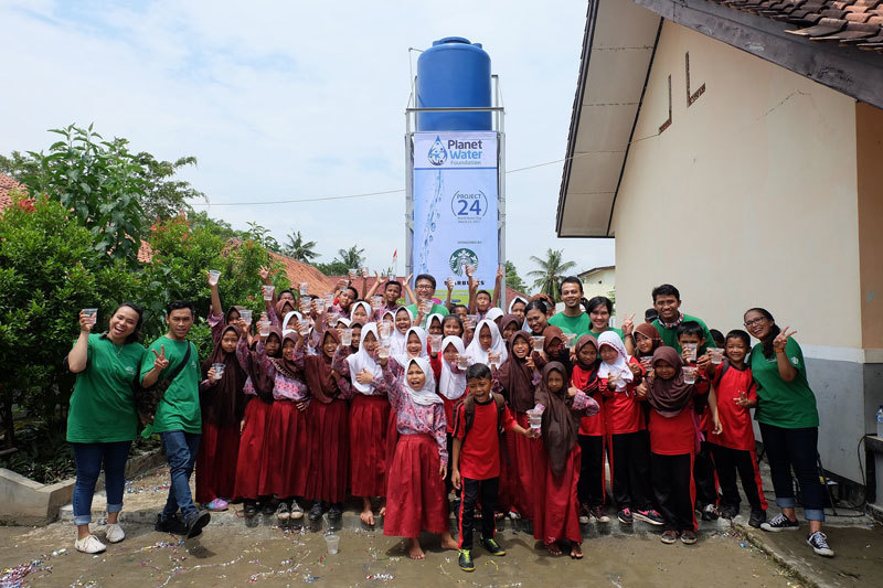 On World Water Day, Starbucks joins forces with Planet Water Foundation for Project 24 at SD Negeri Sukahurip 2 (public elementary school Sukahurip 2), Bekasi, West Java to create access to clean drinking water by deploying the AquaTower water filtration solution to support the daily drinking water requirements of up to 1,000 people per day. Since 2013, Starbucks together with Planet Water Foundation have built 10 water filtration systems across Indonesia.