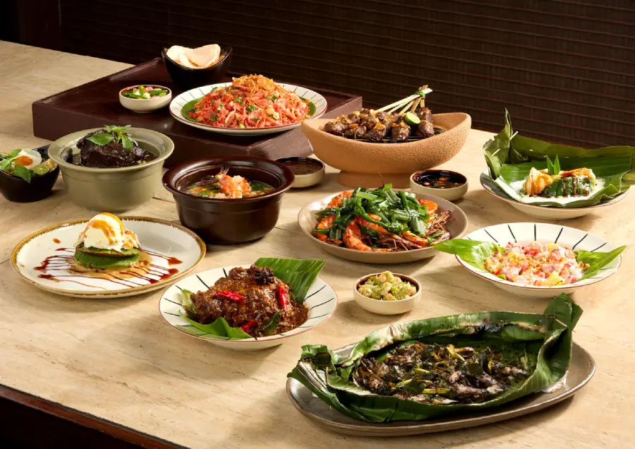 The recommended highlights from Jejak Rasa unfold like a culinary map of Indonesia. Diners can savour Padang’s rendang beef cheek, tender and rich with spice, or enjoy the citrus‑bright freshness of Ternate’s Tuna gohu. Gorontalo’s Sop Binte Biluhuta—a sweet corn soup comforts with shrimp and basil, while Aceh’s Udang Tangkap—crispy prawns bring bold character with curry leaves. East Java contributes smoky Pepes Shisamo, while Surabaya’s Red Fried Rice and Padang’s Rendang Beef Cheek add vibrant flavour to the journey. To finish, Jongkong and Surabi Pandan Durian remind diners that Indonesian desserts carry just as much heritage as the savoury plates.