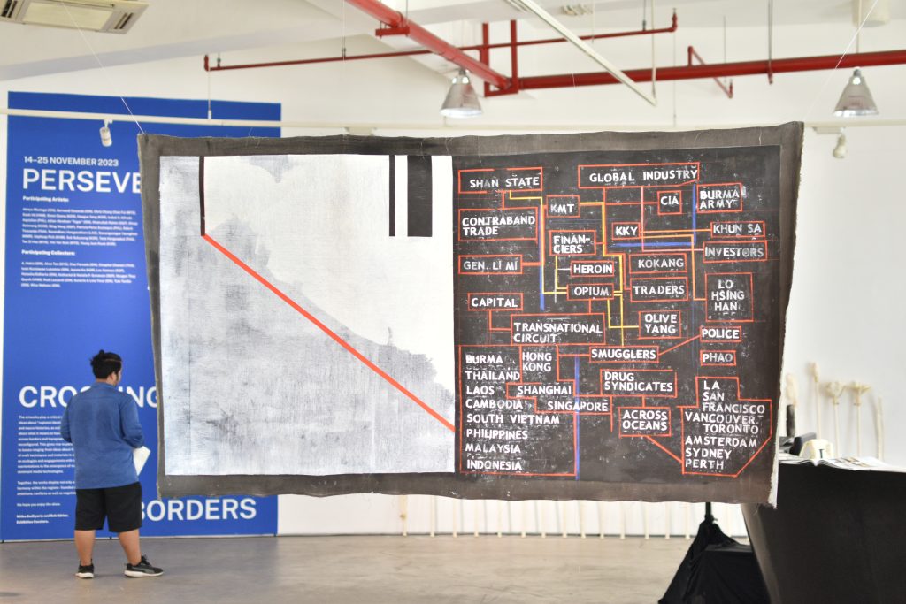 The next event was the immersive 13-day art exhibition 2023 ASEAN-Korea Innovative Culture Exhibition with the theme “PERSEVERANCE: Art Crossing Borders”. It was held from 14 – 25 November 2023. With the goal to showcase artworks by ASEAN-Korea artists, all works were sourced from collectors and cultural institutions from the ASEAN-Korea region. Discussions on the evolution of Southeast Asian contemporary art gained traction since the mid-1990s, notably in showcasing artworks from Southeast Asian artists at international art events like the Asia Pacific Triennale (Brisbane, Australia) and the Fukuoka Art Triennale (Japan). Concurrently, independent institutions and curators initiated exhibitions focusing on art practices within the Asia Pacific to foster interconnectedness and define a sense of “regionalism” within contemporary art in the region.