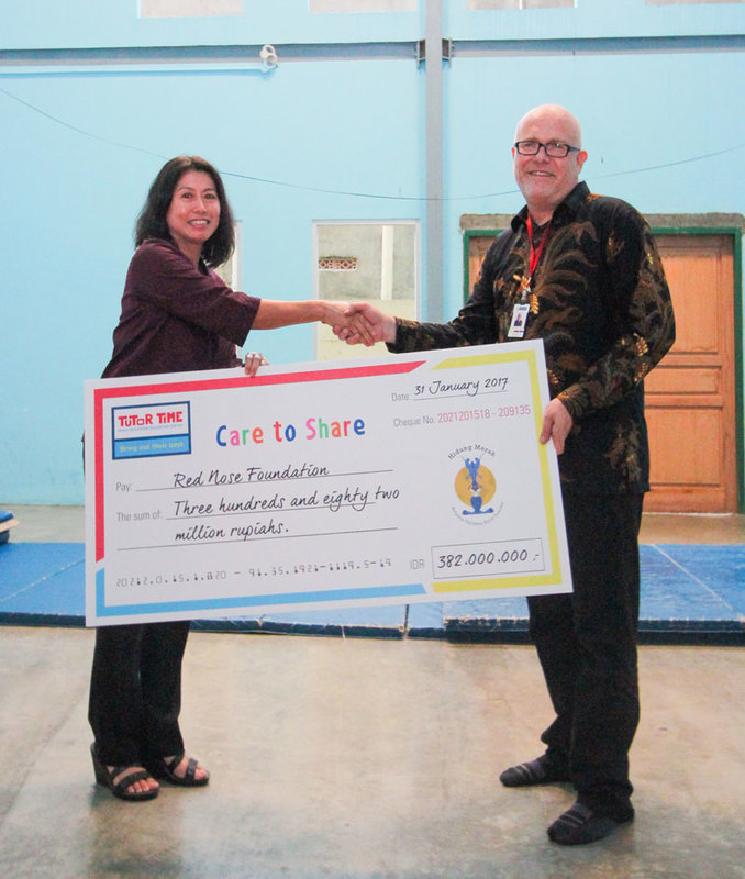 Tutor Time Indonesia, an early childhood education center, gave a generous donation to the Red Nose Foundation to support its education and circus programme for underprivileged children. Matthew Tyne, Executive Director of the Red Nose Foundation, received a ceremonial cheque from Melania Hamdan, Foundation Head of Tutor Time Indonesia on 31 January.