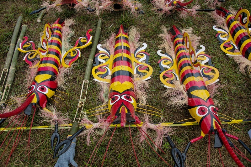 There was no shortage of people who happily engaged with me explaining the use of masks for ceremonies, ritual offerings and protection. I learnt that these masks are linked with Dayak animist beliefs and some masks hold magical powers. Nanang described how some are an embodiment of the ancestral spirits, some enable communication with ancestors, and some ward off evil spirits from a home, a person or crops. Ceremonial masks have specific functions, such as capturing souls at funerals. In the old days, masks also were used to intimidate enemies.