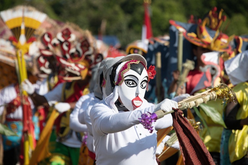 At this point, I was up to about my 40th selfie but of course I happily obliged. It was a great way to make an initial connection. For some reason, capturing foreigners on a phone camera roll is a bit of an obsession among Indonesian people, and in this town, it is rare to have the foreign visitors. The giant-sized speakers blasted out instructions to the dancers, and the Grand Parade began. In all, 91 teams, each with five musicians and eight dancers, were to take their place on the field during the festival.