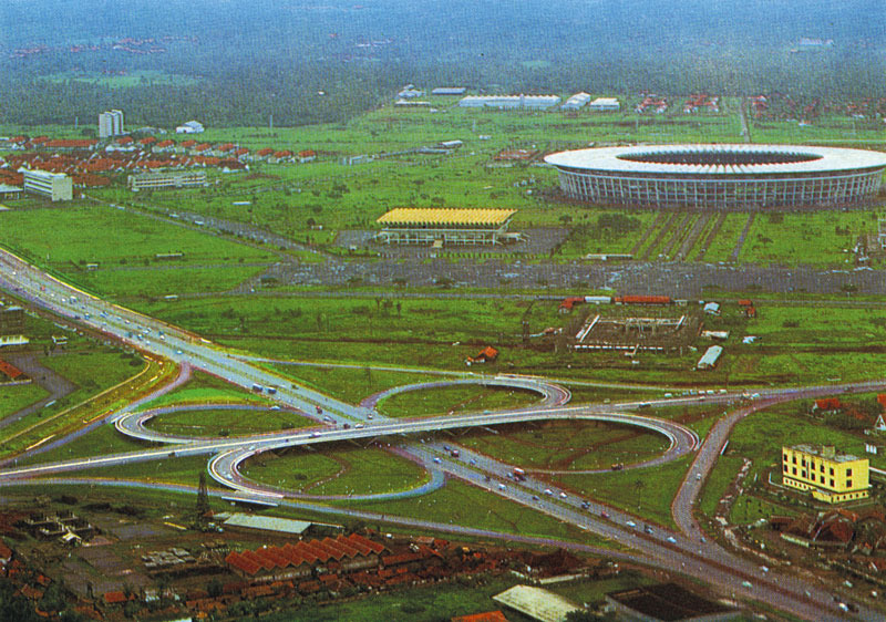 Beyond the stadium, extensive supporting infrastructure was also developed. The TVRI station was built to broadcast the Asian Games and marked Indonesia’s entry into the modern media era, along with the expansion of the city’s transport network, including Bundaran HI and Jembatan Semanggi (Semanggi interchange). Other landmark projects, such as Hotel Indonesia and the Sarinah department store, were also established, underscoring the area’s incredible transformation and evolution.