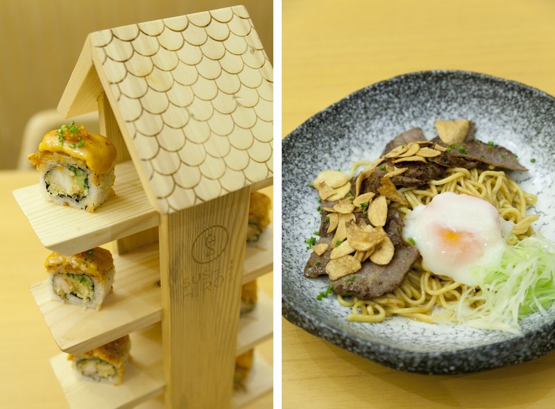 Here, delectable pieces of sushi, from the bombastic roll with cream cheese and salmon to the ‘bomb’ series with foie gras and beef are all beautifully laid out on mini wooden ‘stairs’, which is a unique presentation. In addition there are other Japanese favourites such as wagyu and garlic with rice and kagoshima beef with onsen, which is a platter of thinly sliced beef served with an onsen egg. For dessert, if you’ve got any room after such a delectable feast, there is the ogura and matcha ice cream (along with a choice of other flavours.