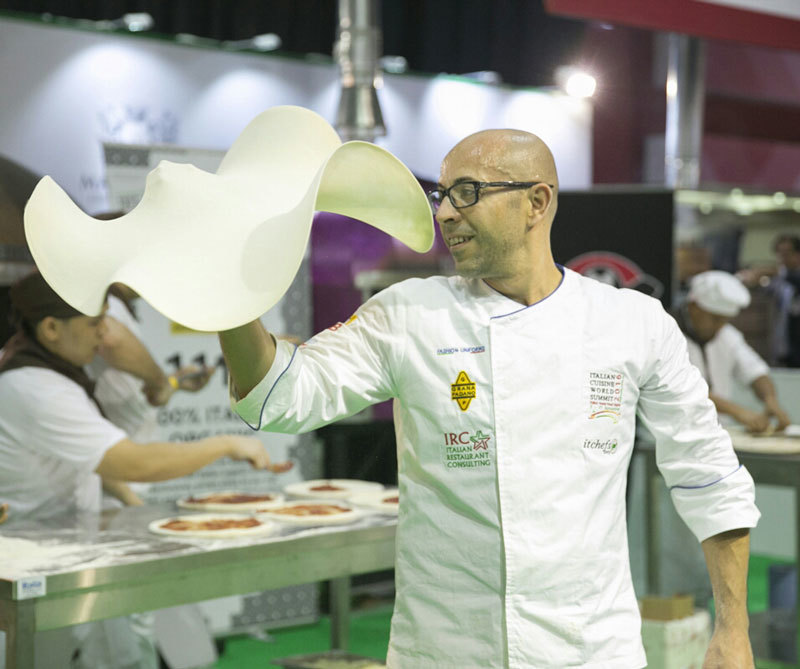 He began his culinary career by working in his family’s pizzeria in a small town in Sicily, learning his trade ever since he was a young boy. Chef Pasqualino was crowned World Champion Pizza Acrobat in 2001 and 2002 and has been traveling around the world since to entertain enthusiastic crowds with his incredible twirls, spins and juggles.