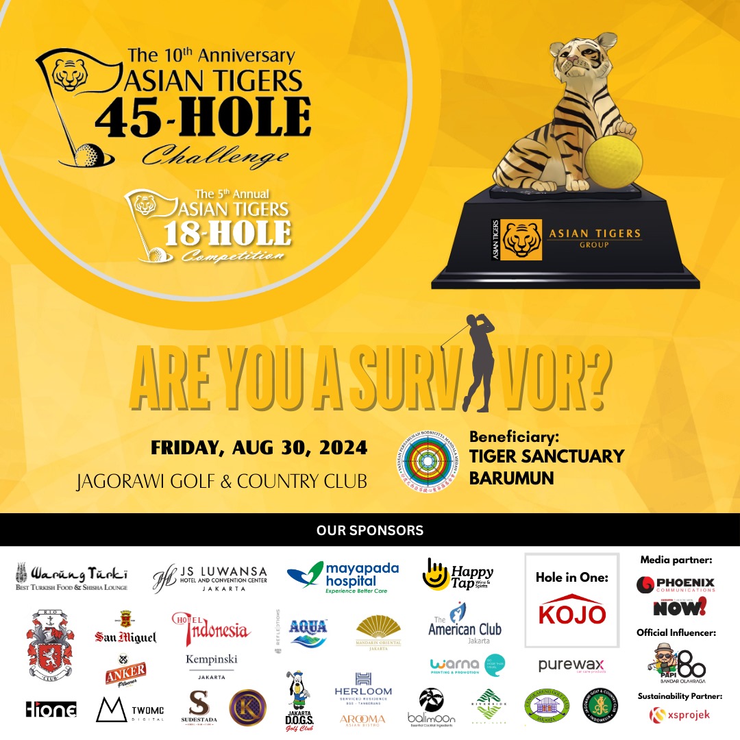 As it approaches the 10th anniversary of its esteemed annual 45 Hole Golf Challenge, scheduled for Friday, 30 August 2024, Asian Tigers Indonesia is thrilled to announce that all profits will now be dedicated to supporting the noble cause of Sanctuary Sumatran Tigers Barumun (TSB). As such, the 45 Hole Golf Challenge continues to support the conservation and rehabilitation of Indonesian tigers.
