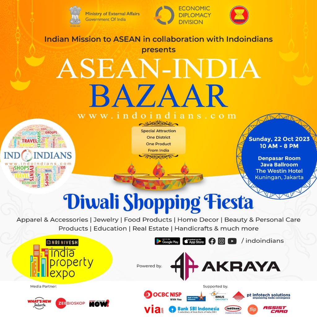 Jakarta is all set to come alive with colours, lights, and the spirit of unity on Sunday, 22 October 2023, with a Diwali Shopping Fiesta at the ASEAN-India Diwali Bazaar. Hosted at the Java Ballroom & Denpasar Room at The Westin Hotel, Kuningan, Jakarta, this much-awaited event promises to be a celebration of culture, community, and creativity, bringing together the diverse tapestry of traditions from across ASEAN and India.