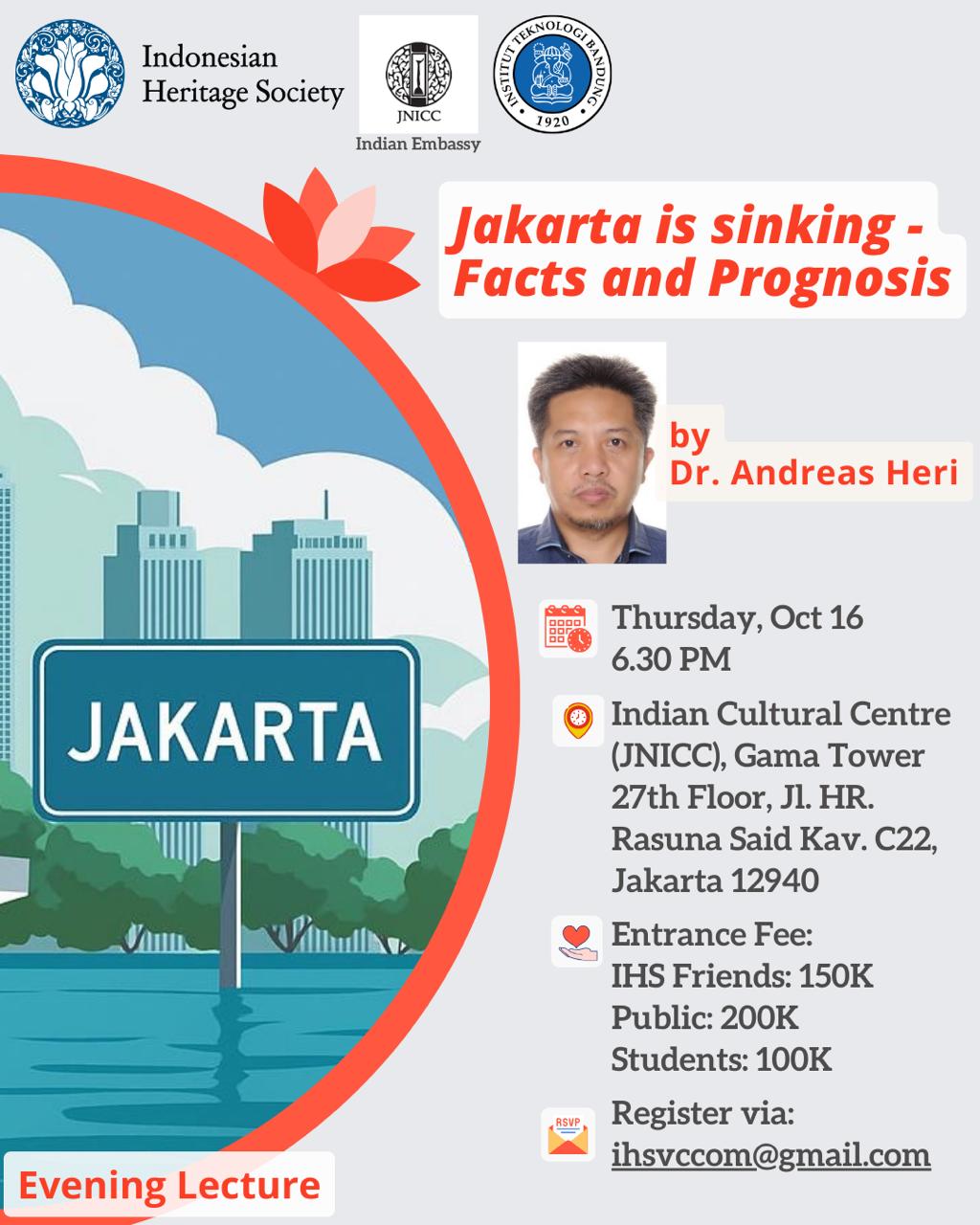The Indonesian Heritage Society invites guests to an eye-opening evening lecture with Dr Andreas Heri, a leading researcher from the Geodesy Research Division at the Institute of Technology Bandung. With over two decades of experience, Dr Heri has dedicated his work to studying Jakarta’s alarming land subsidence and exploring urgent solutions to prevent a looming catastrophe.