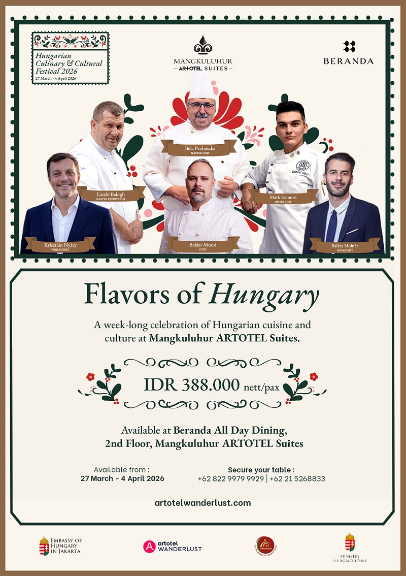 Mangkuluhur ARTOTEL Suites will present the Hungarian Culinary & Cultural Festival 2026 in Jakarta from 27 March to 4 April 2026, in collaboration with the Embassy of Hungary. Staged across several venues within the hotel, the programme brings together Hungarian food, wine and music through a series of dinners, tastings and live performances, reflecting the hotel’s continued interest in culture-led hospitality events.