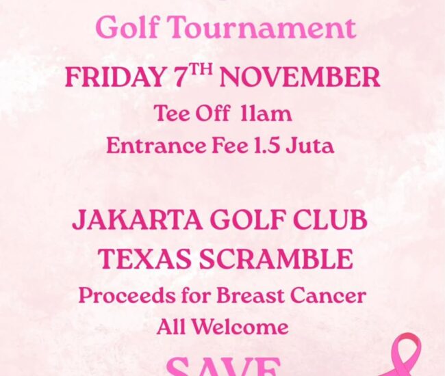 Support a meaningful cause while enjoying a great day on the green. The British Women’s Association (BWA) Going Pink Golf Tournament returns to raise awareness and funds for breast cancer initiatives. Players of all levels are welcome, with entry fees of IDR 1,500,000 for participants and IDR 550,000 for non-players. The event features a friendly