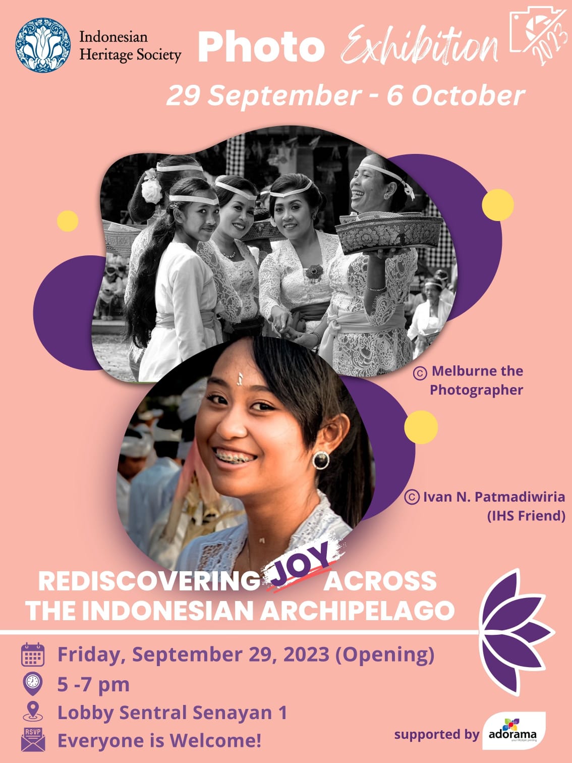 The Indonesian Heritage Society’s annual photo competition has come this year with the theme of ‘Rediscovering Joy Across the Indonesian Archipelago’. The competition will be completed with an exhibition showcasing the best works from the participants. This exhibition will be held from 29 September to 6 October 2023 at the Lobby of Sentral Senayan I. Every culture enthusiast and shutterbug is welcome to pay a visit and marvel at the beauty of the Indonesian panoramic scene.