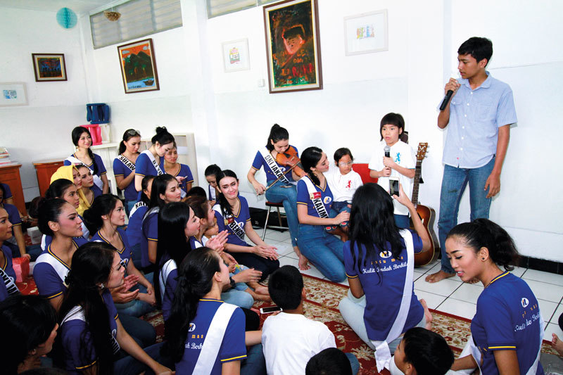 Among the week-long activities for the finalists of the country’s biggest and most respected beauty pageant were Car Free Day as well as a visit to Yayasan Sayap Ibu, an orphanage in Kebayoran Baru, South Jakarta, where they spent time singing and playing with the children.