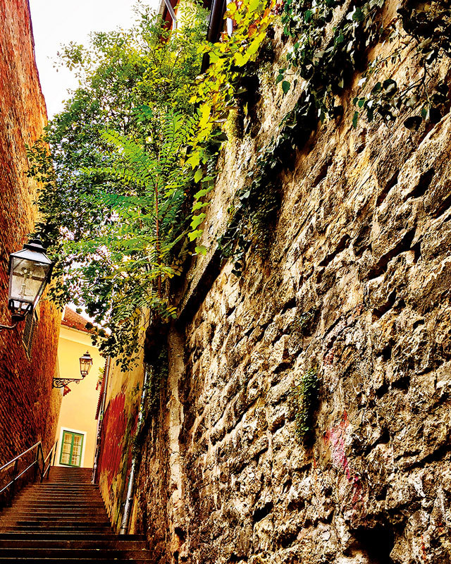 An enchanting flight of stairs leads to the Stone Gate, which has turned into a popular place of worship. It is said that a fire in the late 18th century destroyed the wooden gate – all but the painting of the Virgin and Child. Today, passersby are greeted by flickering candles and flowers placed beneath the wall, as many people still regularly come here to pray.